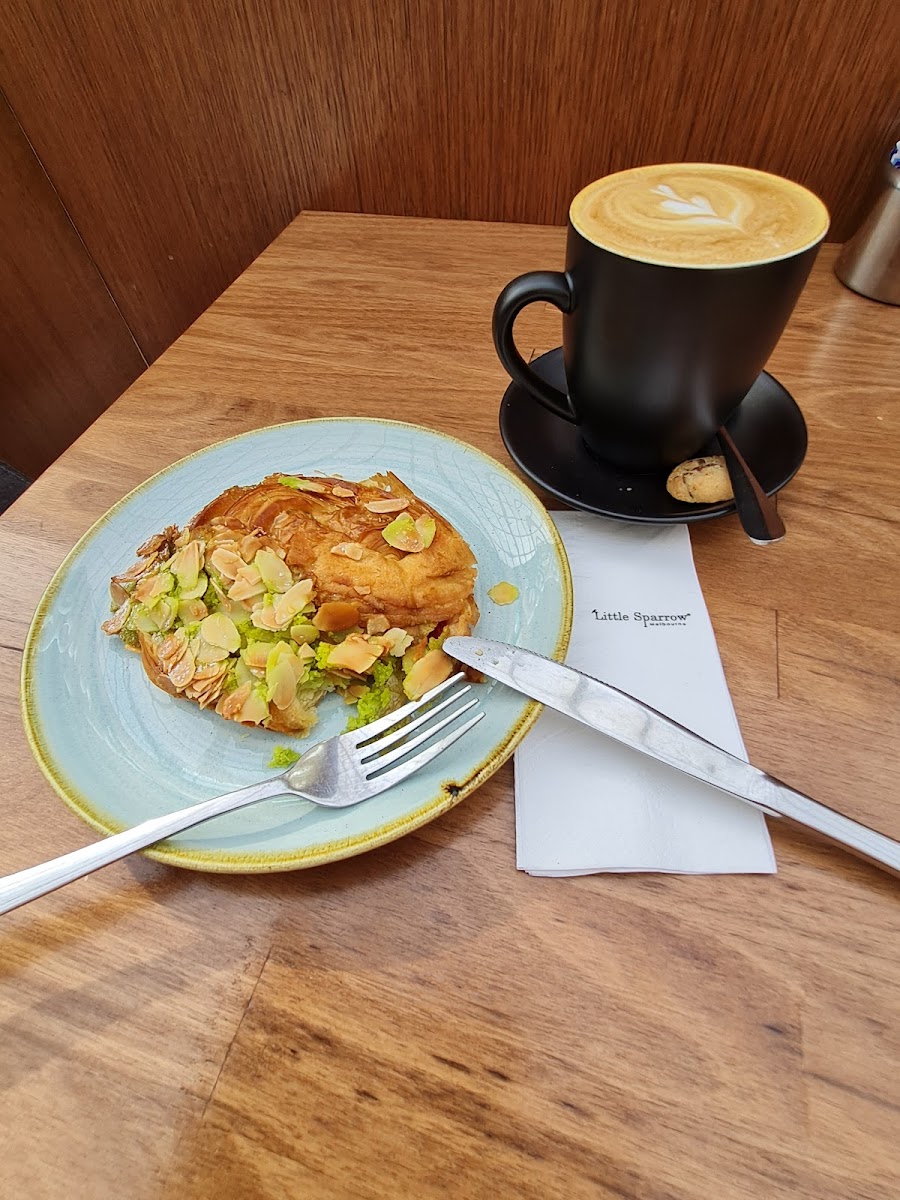What stands out here is the attention to detail in the coffee — whether it’s a flat white or a cappuccino made with oat milk, the drinks strike a satisfying balance between smoothness and depth, clearly crafted by baristas who know their craft. The menu leans into classic café staples but with touches that appeal to a range of tastes: almonds and pistachios show up in the buttery croissants, while sweet options like macarons and a gluten-free cheesecake offer something for those after a lighter treat or a bit of indulgence.